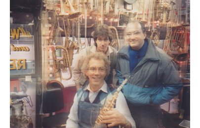 Any given day from his workshop, Rod can be found hammering gently at a client’s flute, clarinet, sax, oboe, English horn, bassoon, trombones, big brass, tenors, altos, French horns, and anything in woodwind and brass., while hundreds of wounded instruments hang from hooks on the wall eagerly awaiting repair. Rod is a master at woodwinds and brass instrument repair. Baltimore was already a fixture on 48th St. at the tender age of 12, when he started shining shoes outside a bar to pay for music lessons. When the weather turned cold, the sympathetic bar owner suggested he learn a trade, and sent him off to the Penzel Mueller instrument-making factory in Long Island City. That led to a fifteen-year apprenticeship that took him to factories in France and Germany, as well as New York. When he completed his training, there was no question about where he would work — with the pros on 48th Street.Rod and his apprentices do repairs big and small — from pad replacements to a complete overhaul for beloved instruments that have literally been run over by cars or subway trains. Rod's shop is not only crammed with instruments and the tools of his trade on every available surface, it has the fascinating aura of the history of 20th century jazz. While his flattened thumbs tinker with a French horn's piston valves, this old-school craftsman nonchalantly relates stories about Stan Getz throwing his tenor sax across the room in a drunken rage and flying him out to Calumet City, Ill., to fix it.